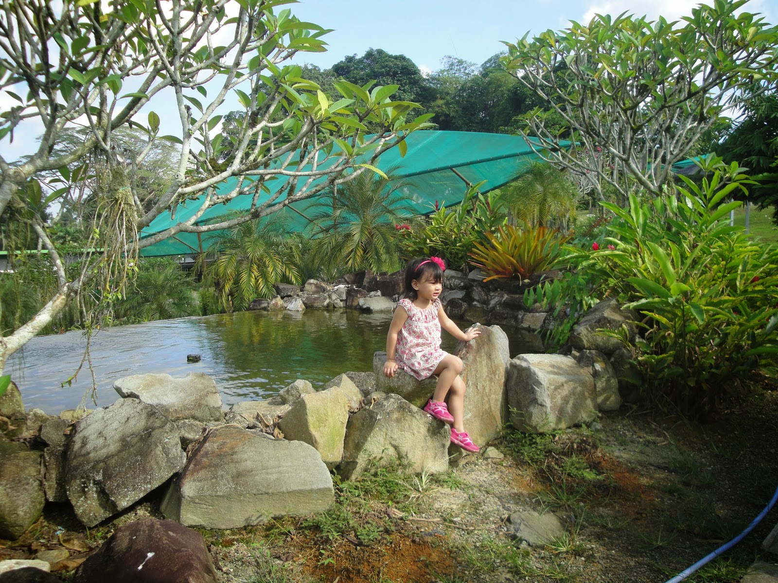 Taman Orkid DBKU/ Orchid Park yang terletak di Petra Jaya kami kunjungi sekitar jam 9.17 pagi hingga 10.00 pagi. Suasana panas sekitar taman meresahkan kami bertiga melewati laluan tanpa bumbung dan anak sungai. Memang banyak spesis orkid di sini, sayangnya banyak yang sudah melepasi era berbunga . Si Kecil asyik dengan payungnya berjalan menari-nari sambil menyanyilah, berlakonlah; sekejap berbahasa Inggeris, sekejap Melayu dan kekadang entah apa bahasa dia guna... mungkin itu petanda cucunda ... gembira.