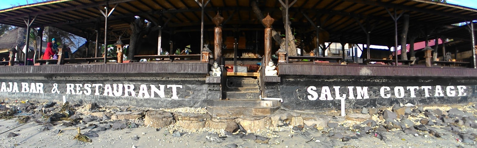 Jeti Gili Air ala kampungan tapi meriah dengan para pelancong. Bersama cucu aku menaiki Cidomo (Kereta kuda). Barangan kami dimuatkan sekali di atas cidomo menuju ke Salim Cottage. Membayar RP100k agak berbaloi kerana dah tua-tua ni tak berdaya nak melangkah di jalan berpasir. Mendapat bilik yang selesa ,cantik dengan dekorasi ala Bali sepenuhnya memang terbaik. Salim Cottage penginapan pilihan anak-anak.